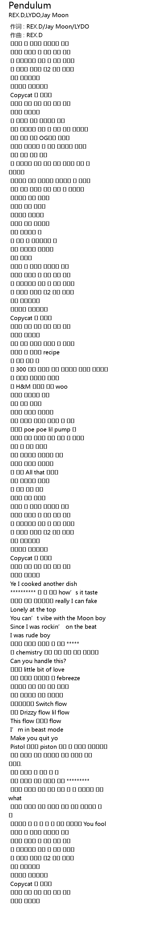 | [00:00.000] | 作词 : REX.D/Jay Moon/LYDO |