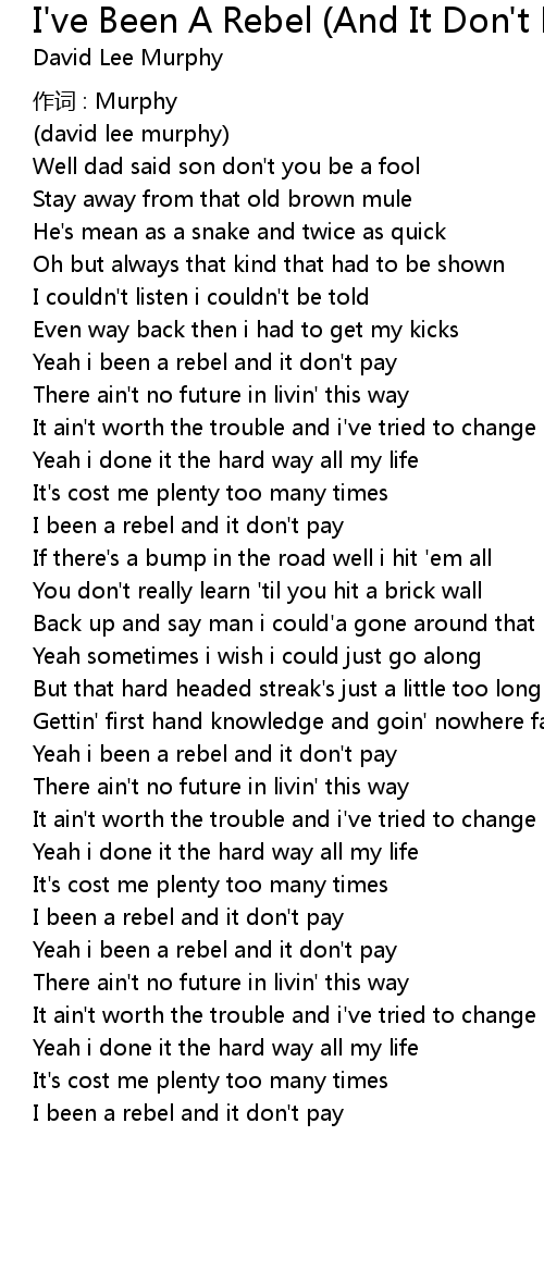 | Yeah i been a rebel and it don' t pay | |