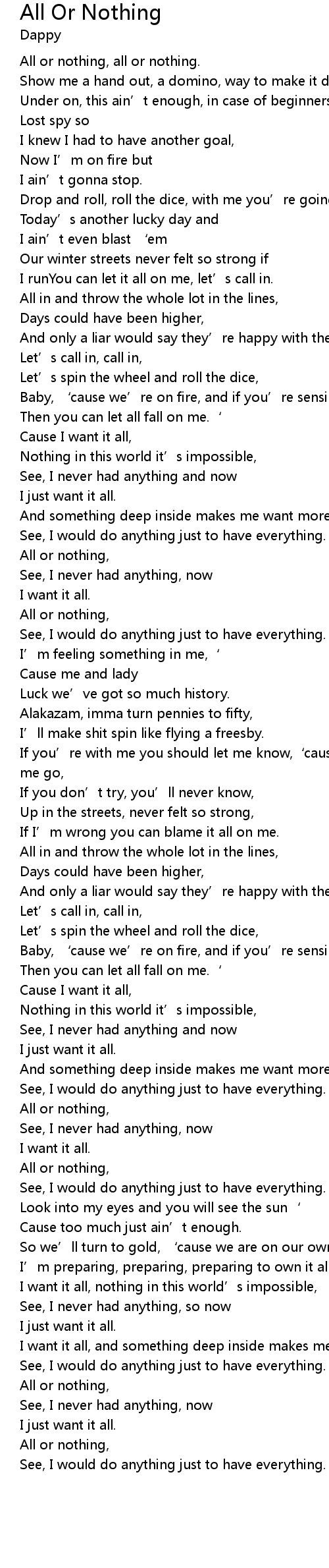 | Drop and roll, roll the dice, with me you’re going to leave tonight. | |