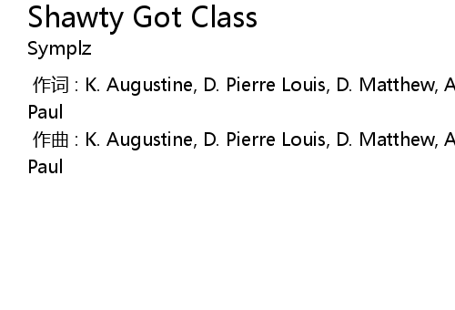 | [00:00.000] | 作曲 : K. Augustine, D. Pierre Louis, D. Matthew, A. Thomas, J. Paul |