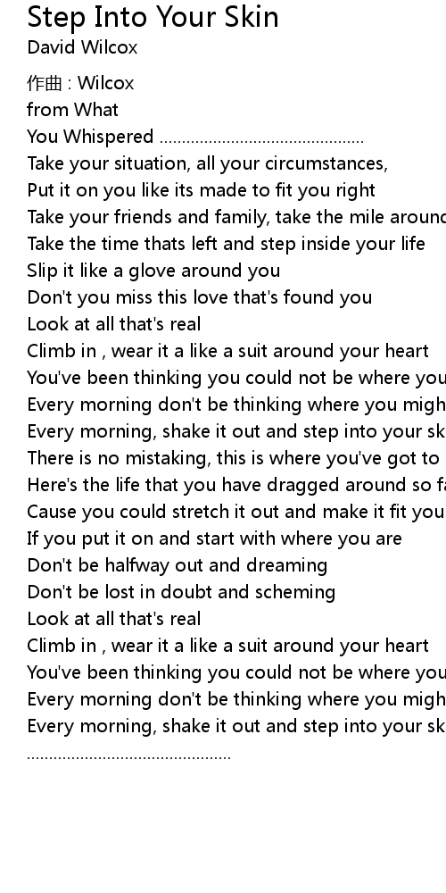 | Every morning, shake it out and step into your skin .............................................. |