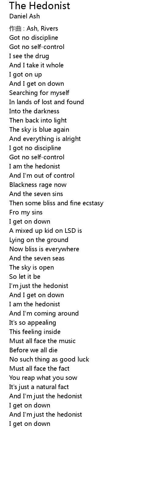 | And I' m just the hedonist | |