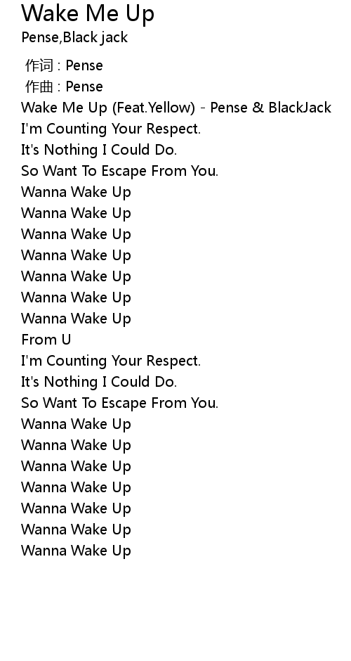 | [00:14.943] | Wake Me Up Feat. Yellow Pense BlackJack |