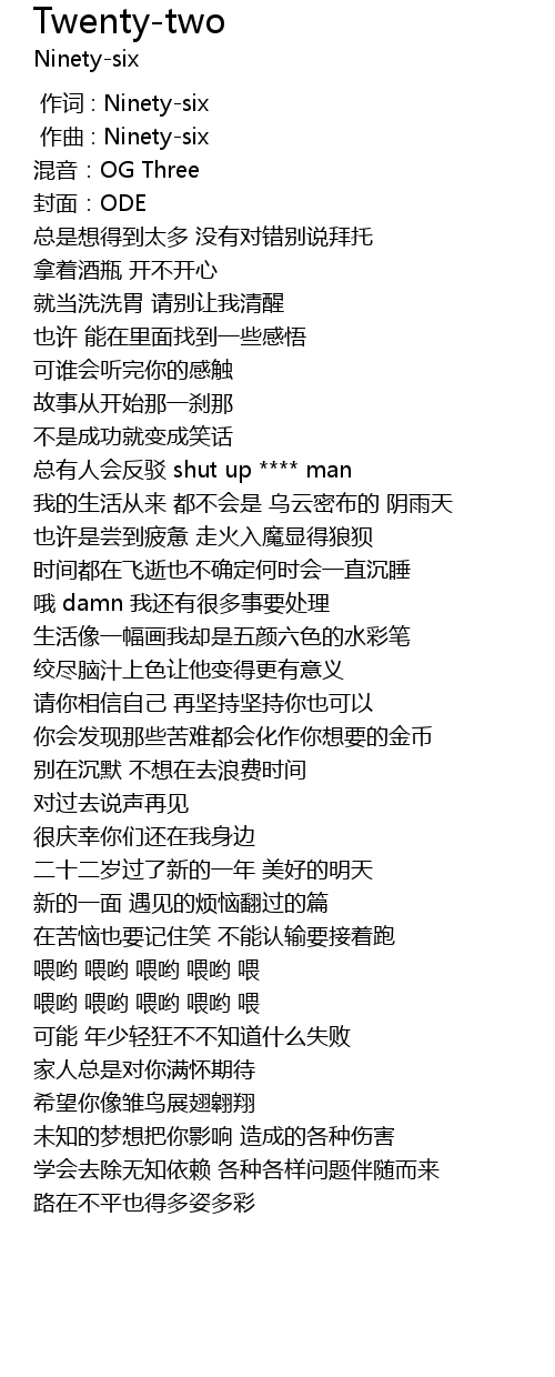 | [00:00.842] | zuò qǔ : Ninetysix |