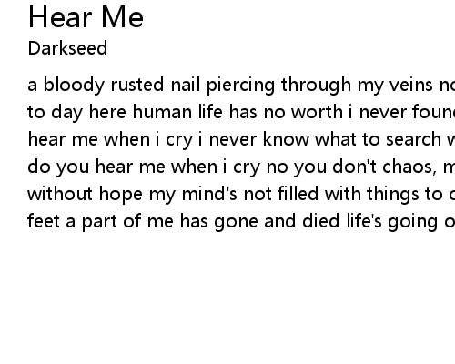 | a bloody rusted nail piercing through my veins no light to change eternal night to day here human life has no worth i never found what i was looking for do you hear me when i cry i never know what to search will you find it when i'm gone? do you hear me when i cry no you don't chaos, madness, many sighs in a world without hope my mind's not filled with things to come time runs away under my feet a part of me has gone and died life's going on and will do when i'm gone |