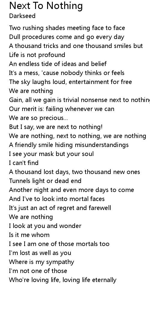 We are nothing, next to nothing, we are nothing |