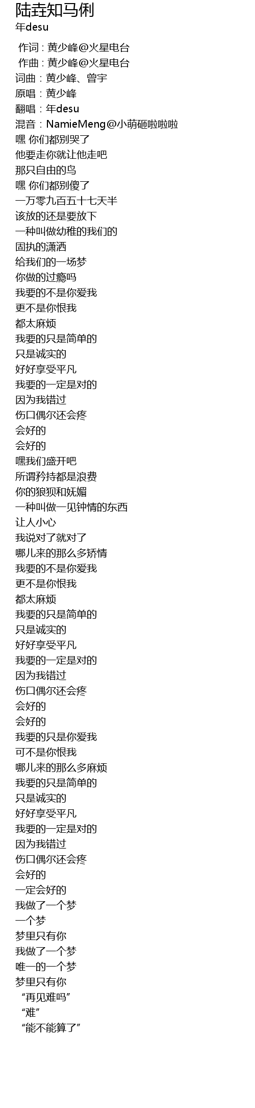 | [00:00.000] | 作词 : 黄少峰@火星电台 |