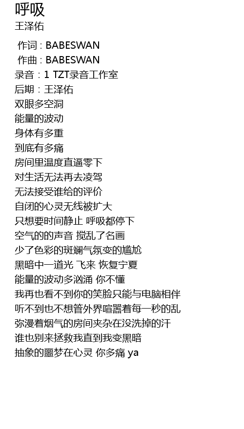 | [00:01.000] | zuo qu : BABESWAN |
