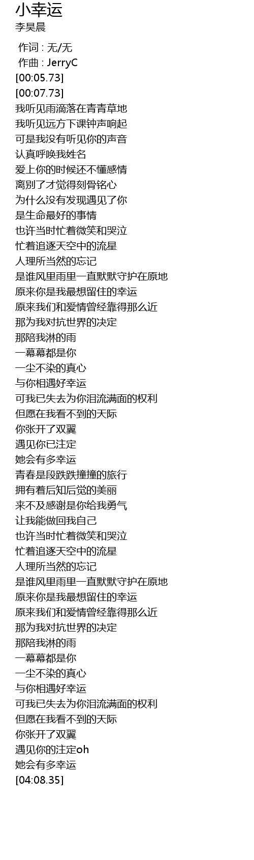 | [04:03.86] | tā huì yǒu duō xìng yùn |
