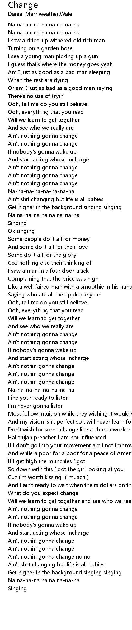 | [00:55.37] | Ain' t nothing gonna change |