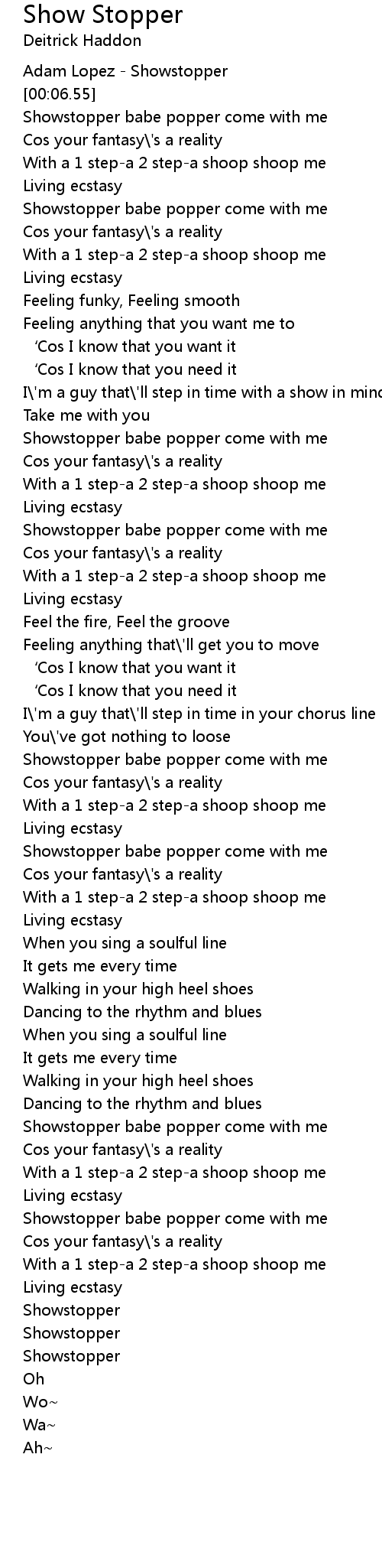| [00:00.22] | Adam Lopez - Showstopper |