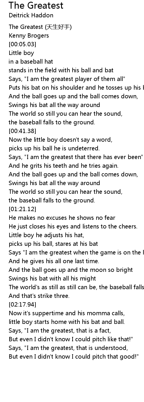 | [00:57.36] | Says, "I am the greatest that there has ever been" |