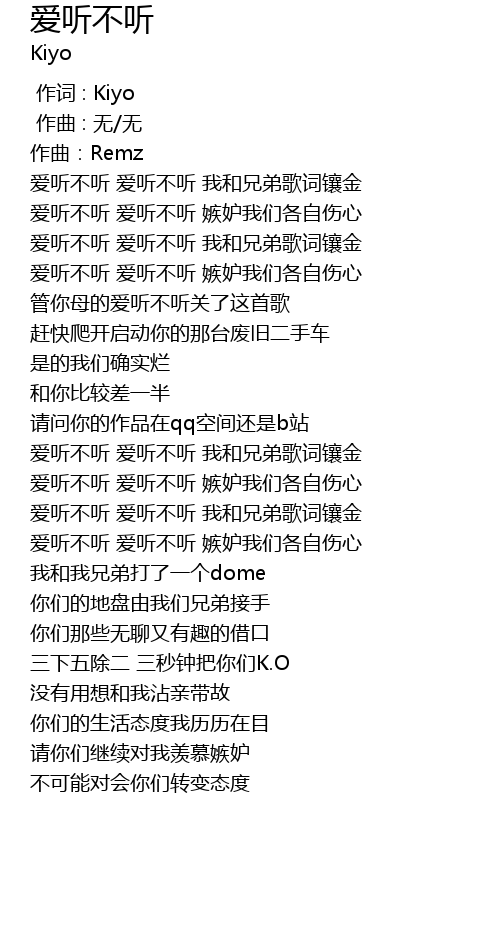 | [00:30.423] | guǎn nǐ mǔ de ài tīng bù tīng guān le zhè shǒu gē |
