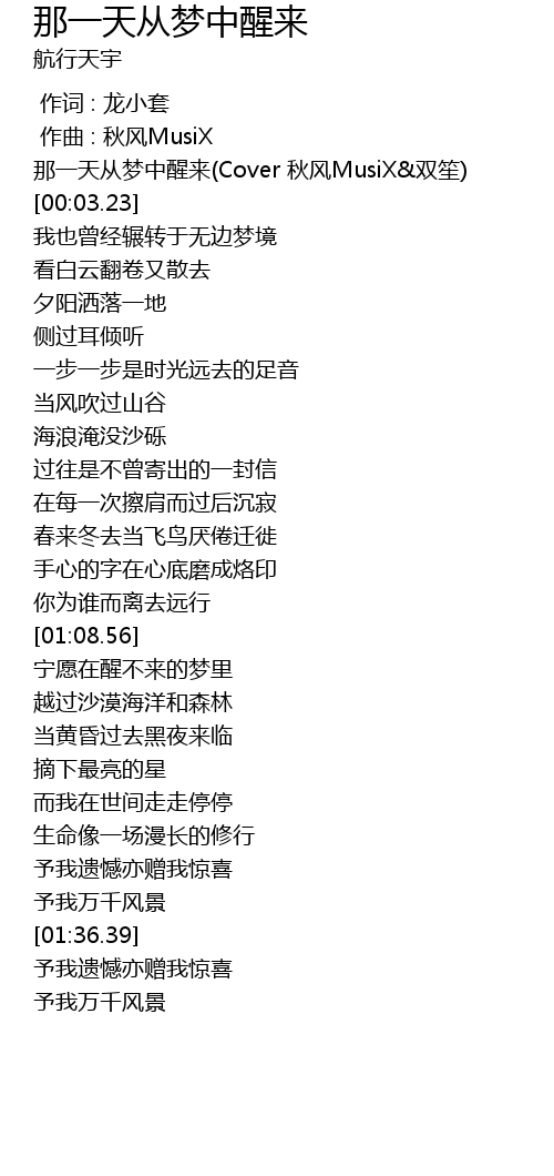 | [00:02.22] | 那一天从梦中醒来(Cover 秋风MusiX&双笙) |