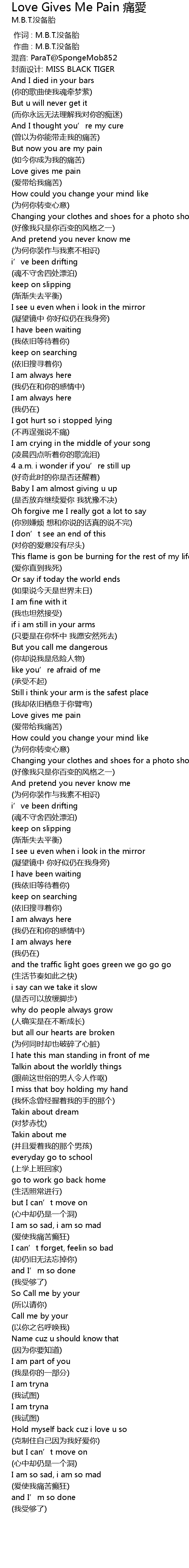 | [01:32.053] | (爱带给我痛苦) |