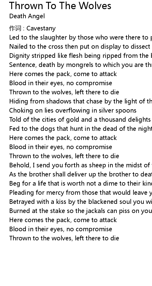 | Thrown to the wolves, left there to die |