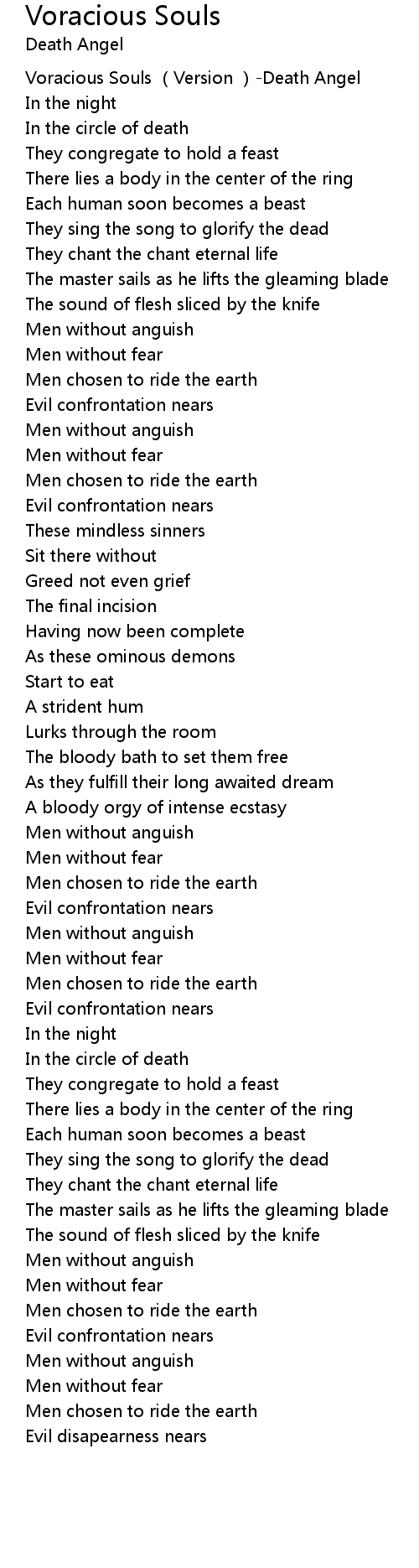 | [00:00.00] | Voracious Souls Version Death Angel |