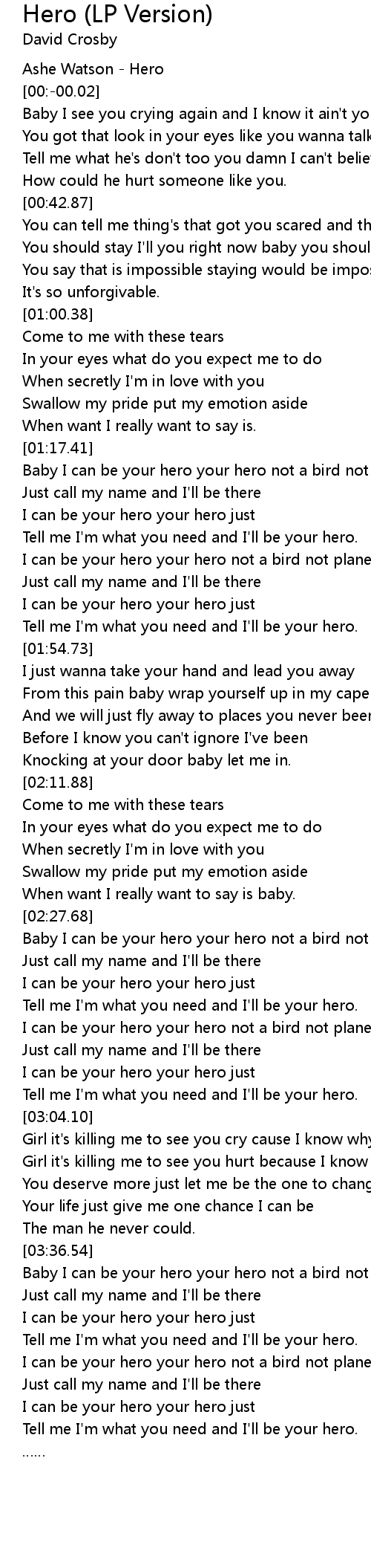 | [01:17.58] | Baby I can be your hero your hero not a bird not plane |