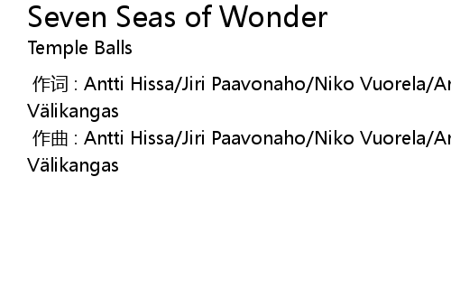 | [00:00.000] | 作词 : Antti Hissa/Jiri Paavonaho/Niko Vuorela/Arttu Teronen/Jimi Välikangas |