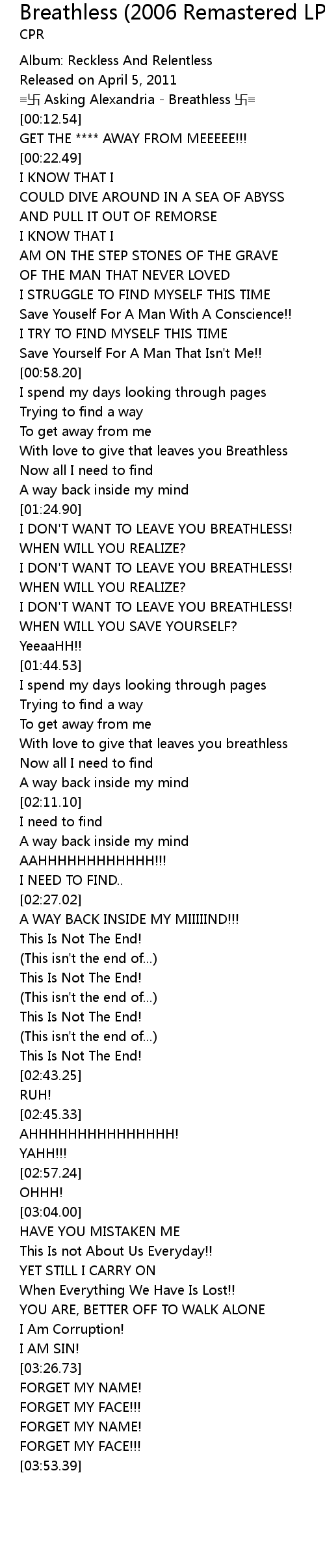 | [00:08.91] | ≡卐 Asking Alexandria - Breathless 卐≡ |