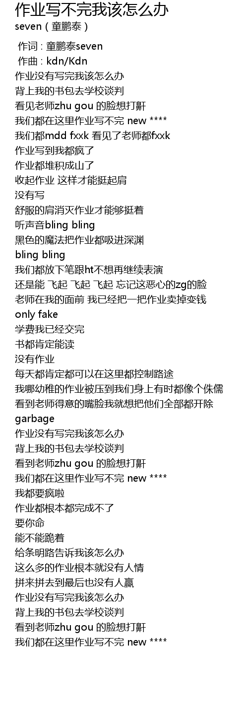 | [00:16.615] | zuò yè méi yǒu xiě wán wǒ gāi zěn me bàn |