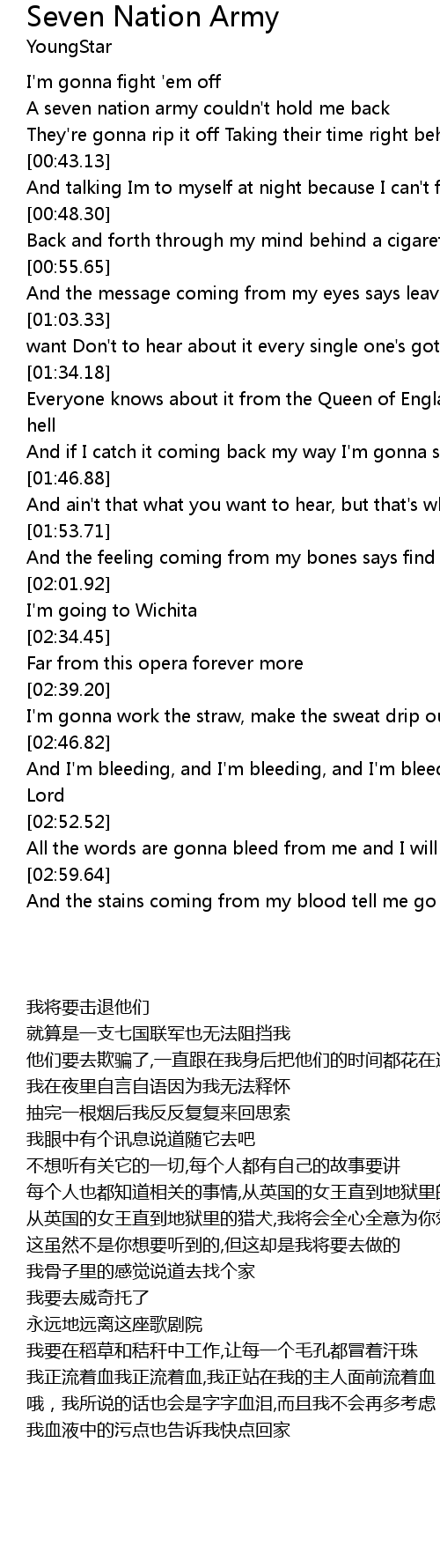 A seven nation army couldn't hold me back |