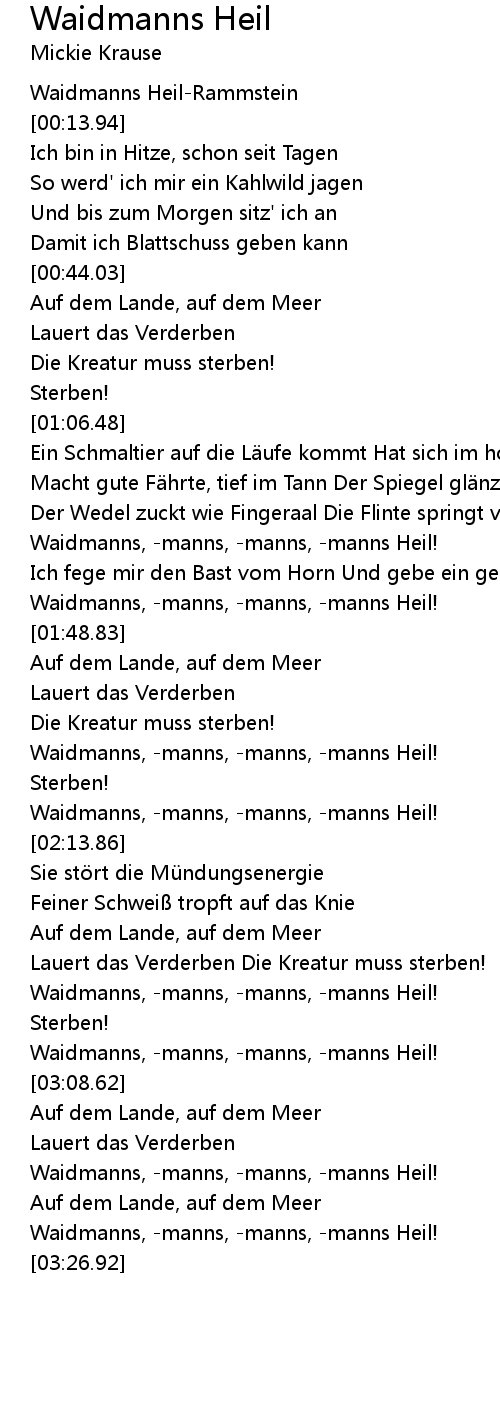 | [00:06.12] | Waidmanns HeilRammstein |