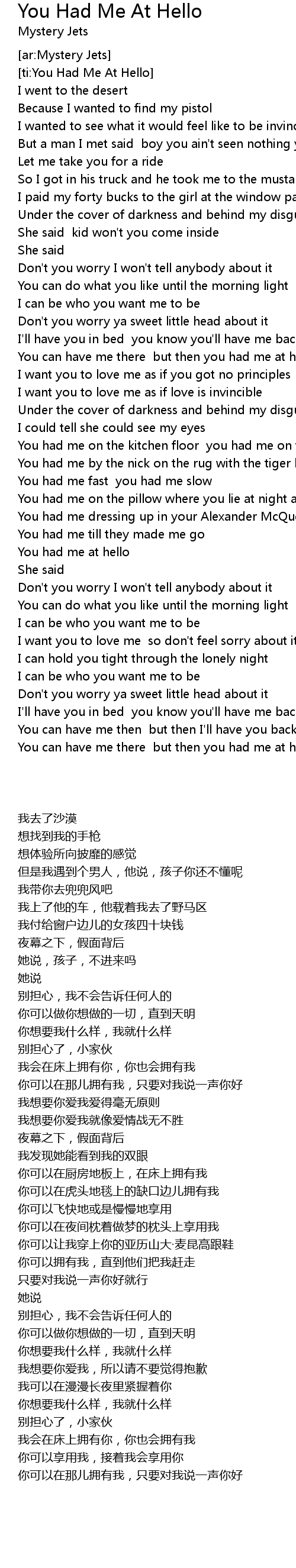 [ti:You Had Me At Hello] |