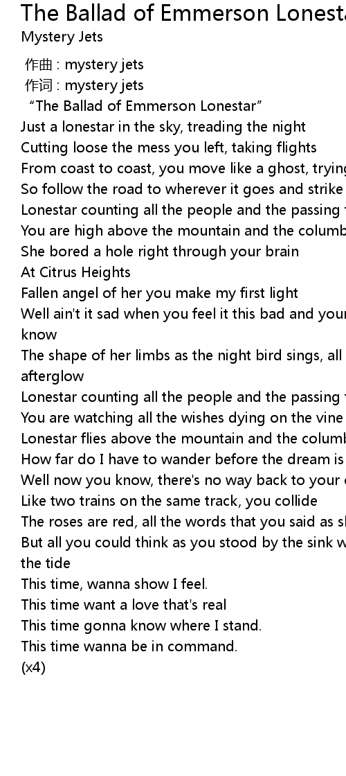 | [00:01.76] | “The Ballad of Emmerson Lonestar” |