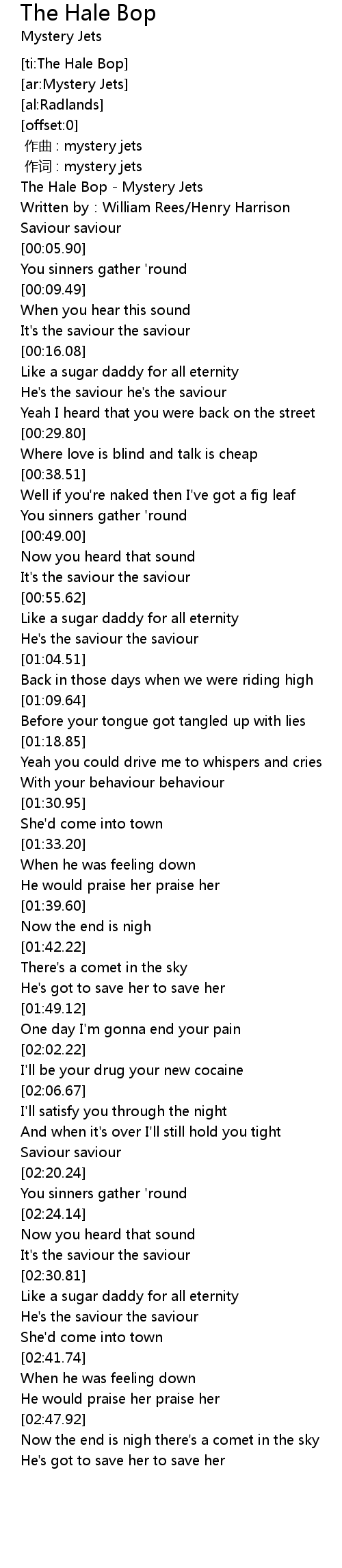 | [00:00.15] | The Hale Bop Mystery Jets |