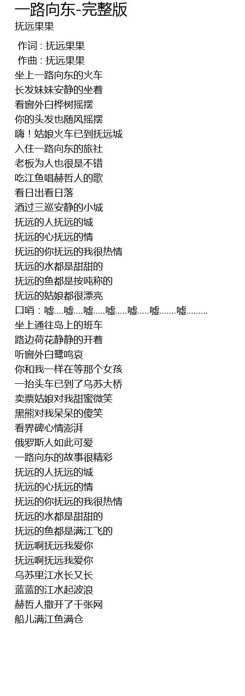 | [00:32.603] | 嗨!姑娘火车已到抚远城 |