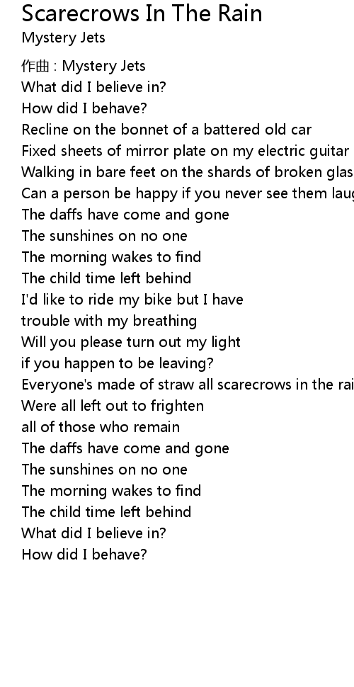 | Everyone's made of straw all scarecrows in the rain | |