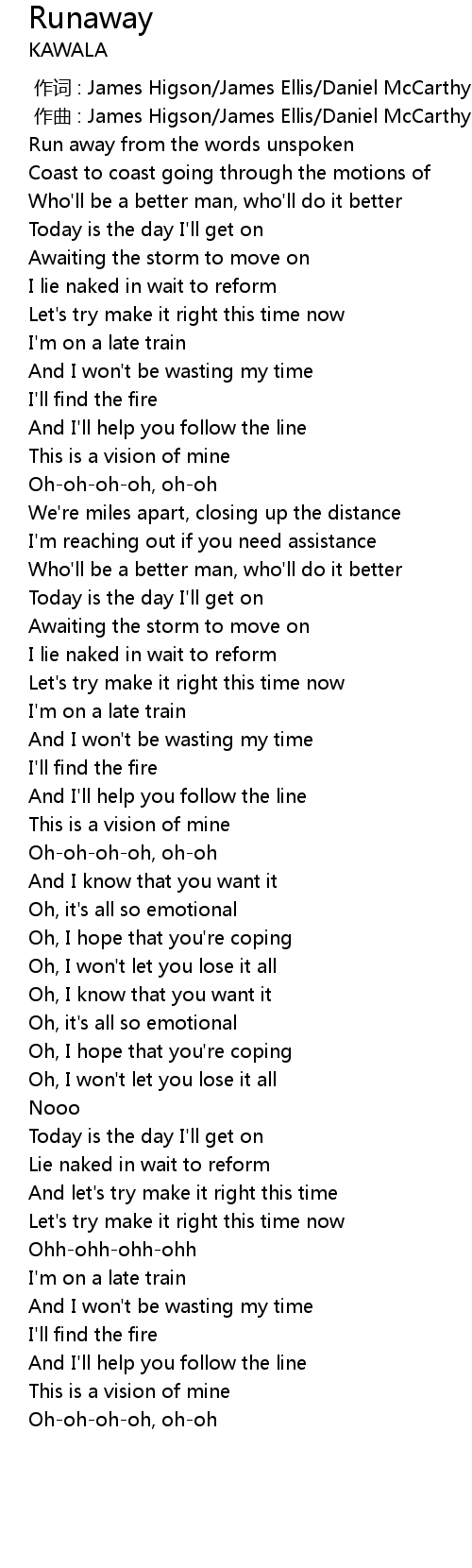 | [00:00.000] | 作词 : James Higson/James Ellis/Daniel McCarthy |