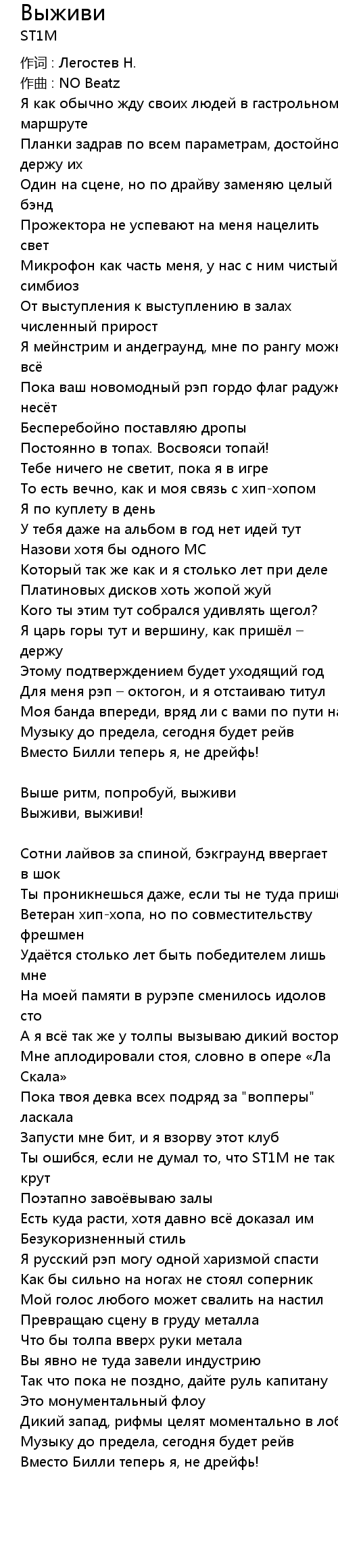 Выживи  Lyrics