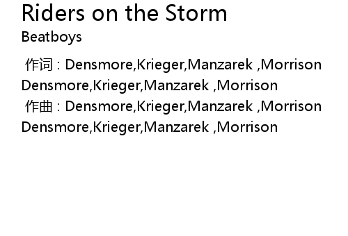 | [00:00.000] | 作词 : Densmore,Krieger,Manzarek ,Morrison Densmore,Krieger,Manzarek ,Morrison |