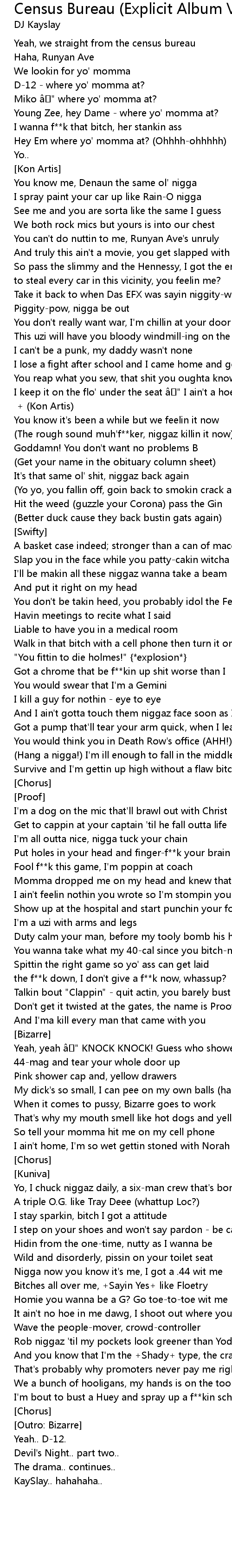 | Song | Census Bureau (Explicit Album Version) - Clean Album Version |