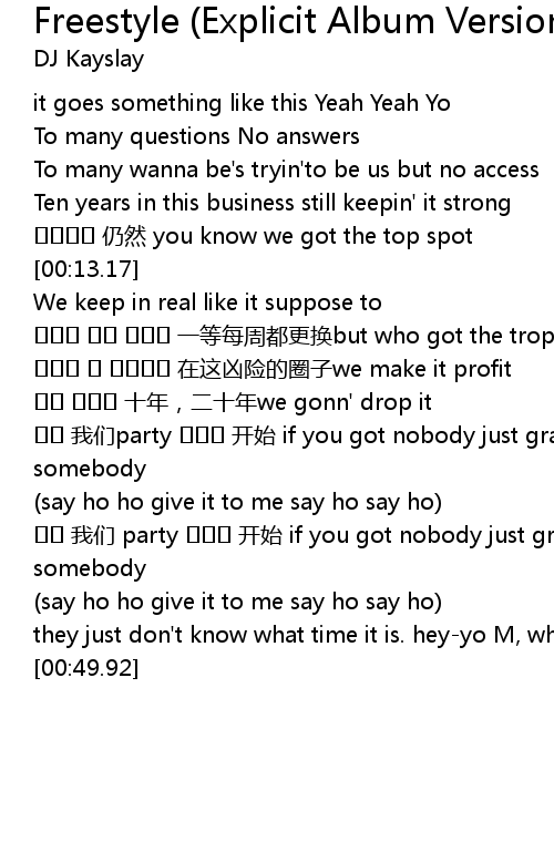 | Song | Freestyle (Explicit Album Version) - Explicit Album Version |