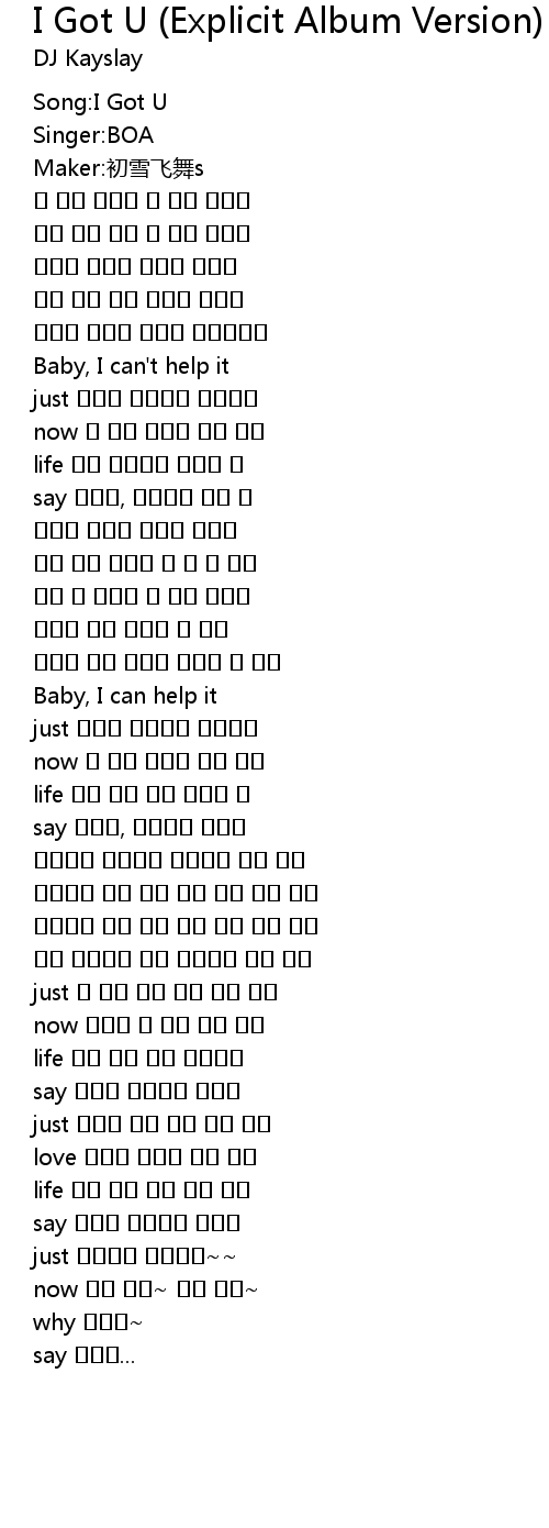| Song | I Got U (Explicit Album Version) - Explicit Album Version |