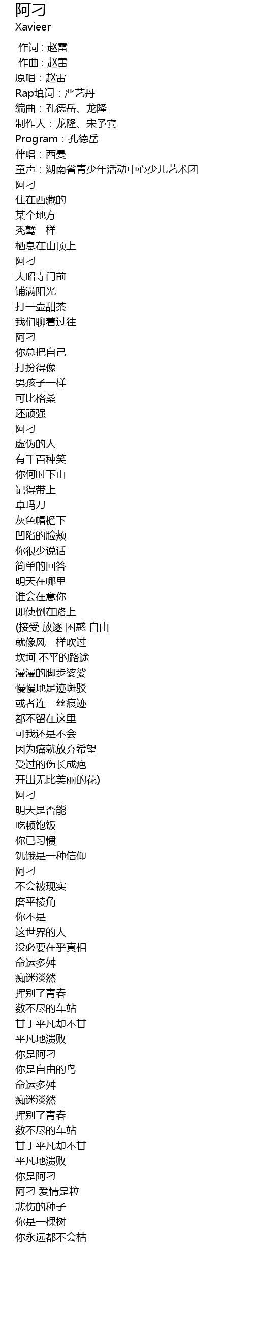 | [04:37.44] | 你是阿刁 |