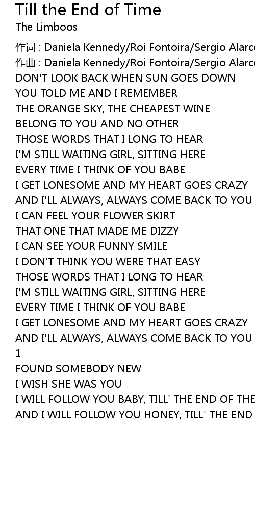 | AND I WILL FOLLOW YOU HONEY, TILL' THE END OF TIME |