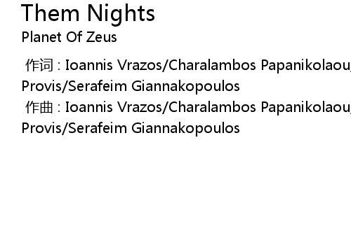| [00:00.000] | 作词 : Ioannis Vrazos/Charalambos Papanikolaou/Stylianos Provis/Serafeim Giannakopoulos |