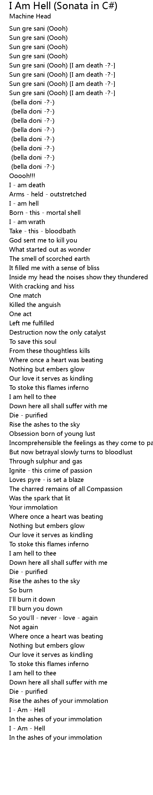 Sun gre sani (Oooh) [I am death -?-] (bella doni -?-) |