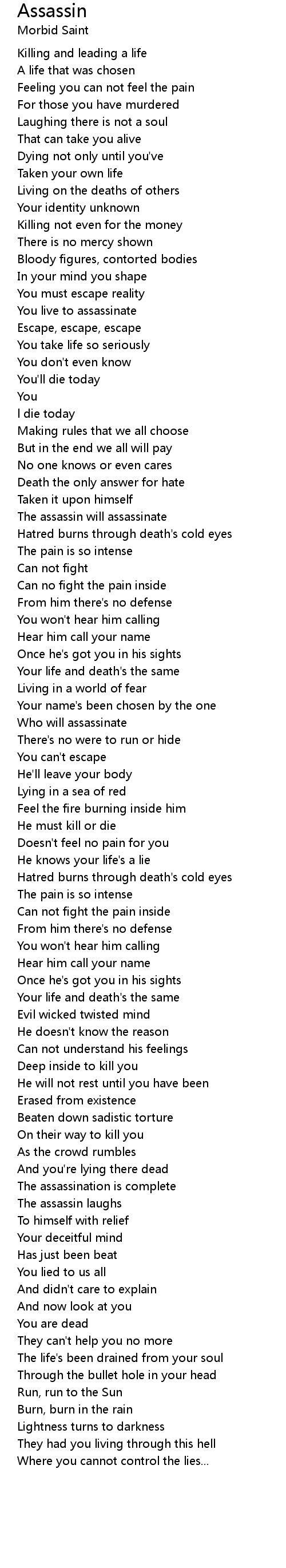 You live to assassinate |
