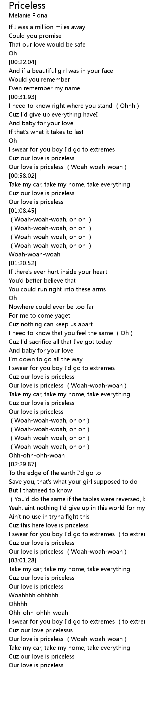 | [00:55.40] | Our love is priceless (Woah-woah-woah) |
