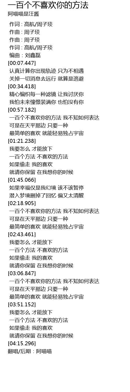 | [03:56.913] | 一百个方法 不喜欢的方法 |