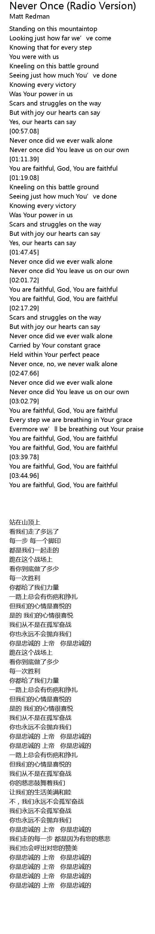 | [02:55.17] | Never once did You leave us on our own |