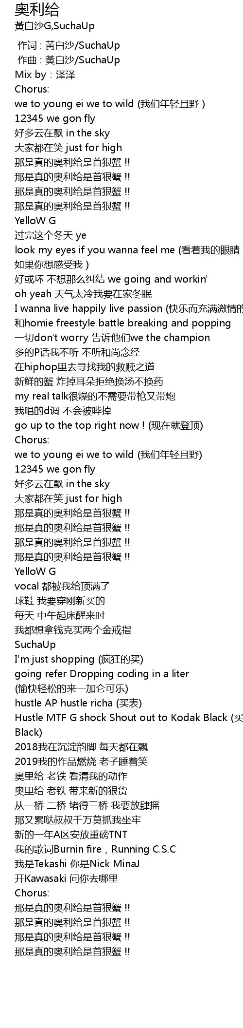 | [01:16.933] | 那是真的奥利给是首狠蟹 !! |