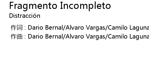 | [00:00.000] | 作词 : Dario Bernal/Alvaro Vargas/Camilo Laguna/Diego zambrano |
