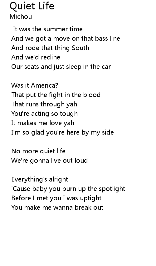 | Song | Quiet Life |