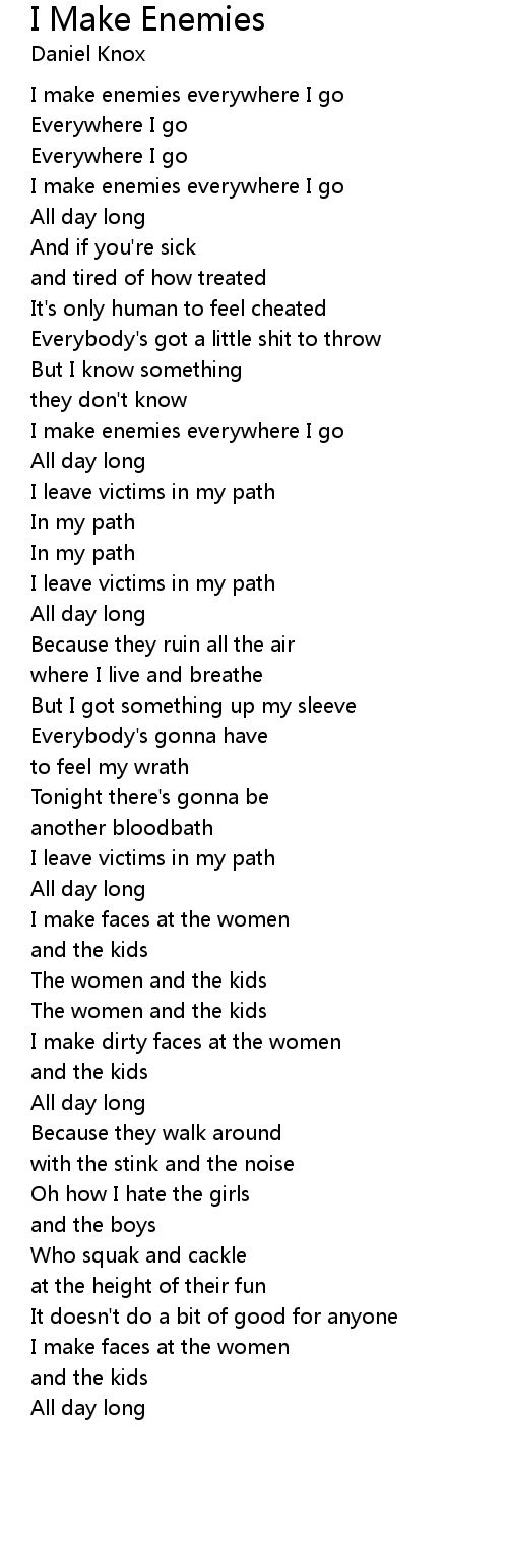 I make enemies everywhere I go |